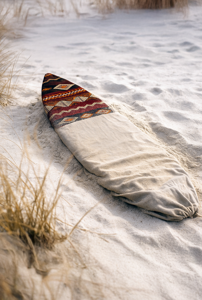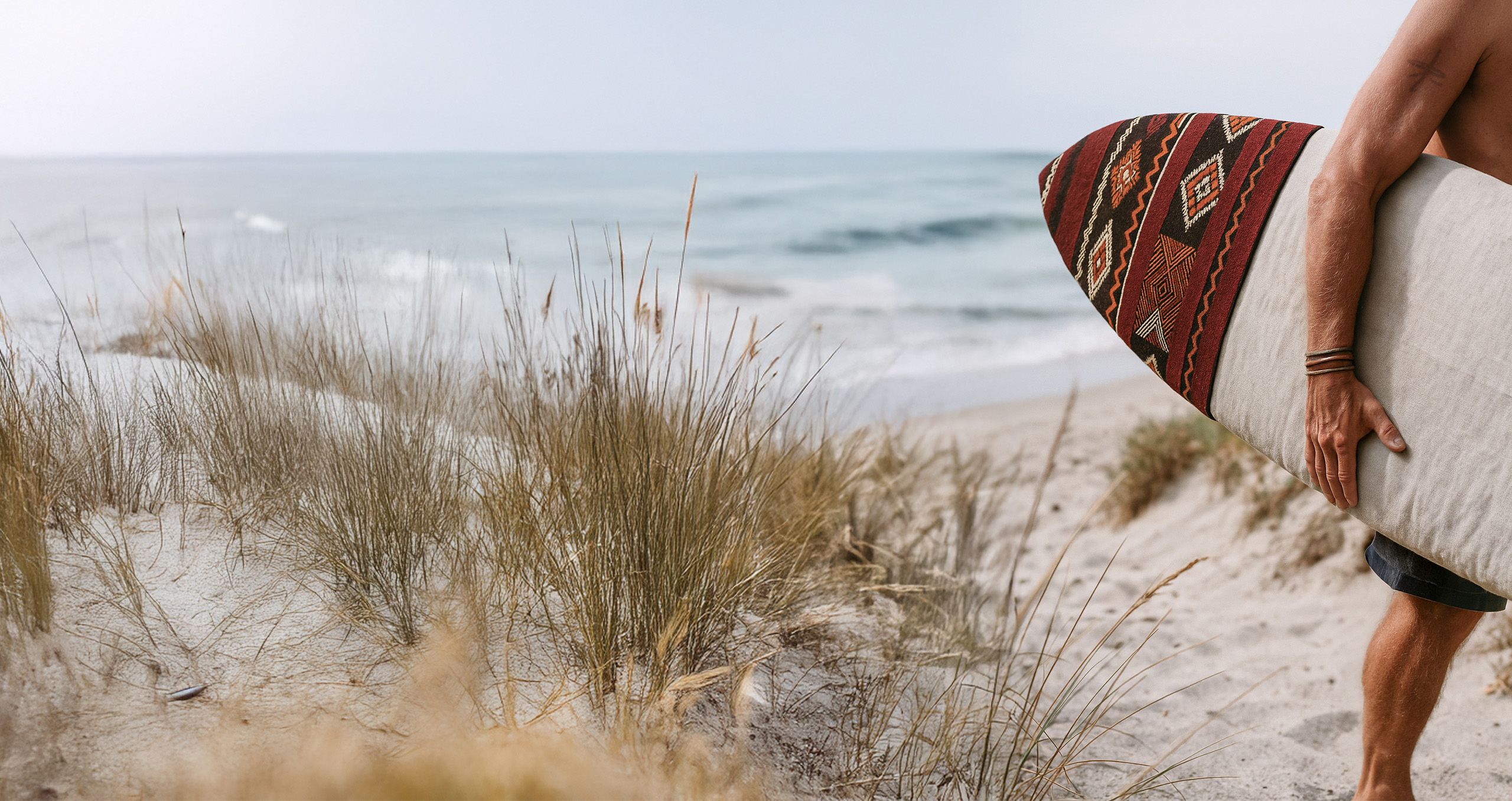 Okklu is a brand based on the principle of No-Line Commerce. It started with a product: a boardsock, developed as a practical response to specific needs in surf culture. Better fit, reduced waste, and more responsible production. Each sock is made from reclaimed textiles, individually cut, and produced in collaboration with local weaving studios.